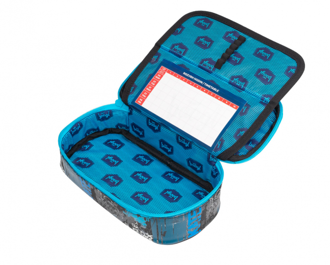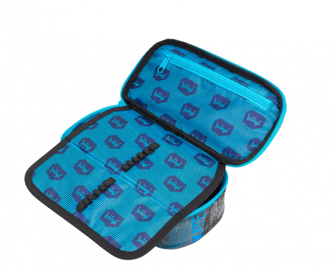 Pevný penál na zip s dvojitou výklopnou chlopní v designu edice Freestyle, která je v modrošedých tónech.