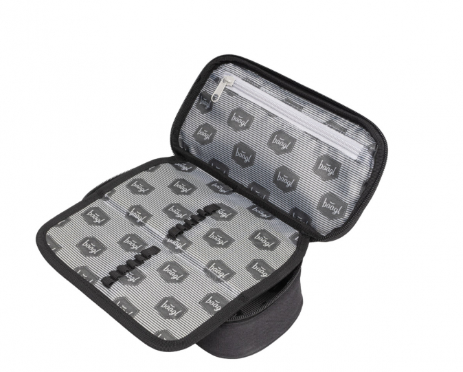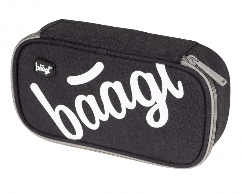 Černý pevný penál na zip s dvojitou výklopnou chlopní a logem Baagl na přední straně.