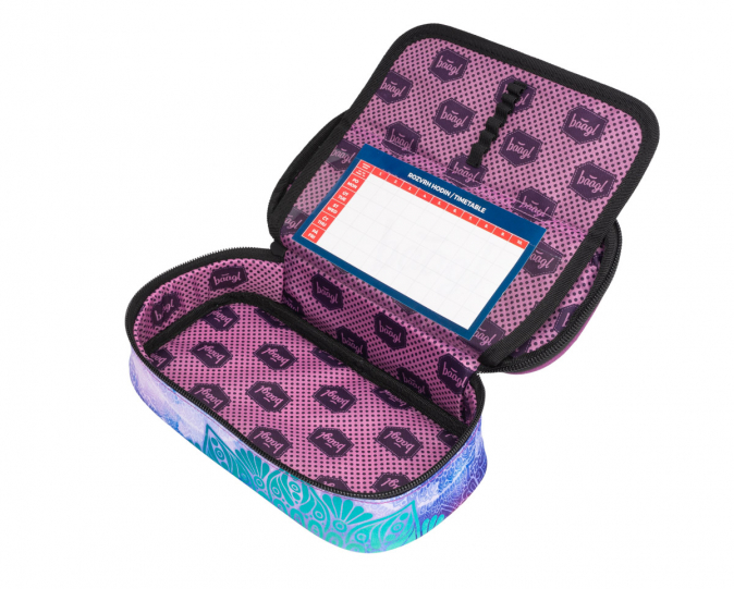 Pevný penál na zip s dvojitou výklopnou chlopní a potiskem mandal.