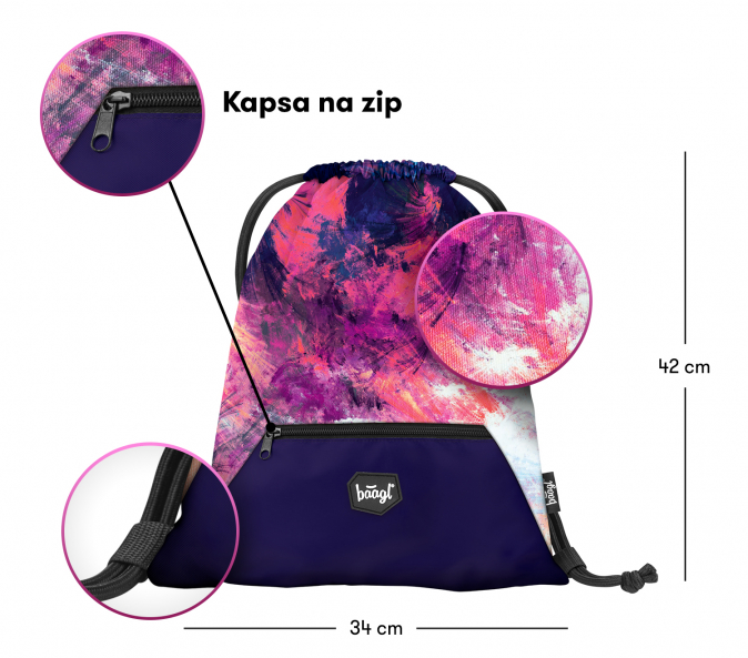 Sáček, který svým barevným provedením zaujme každou školačku.