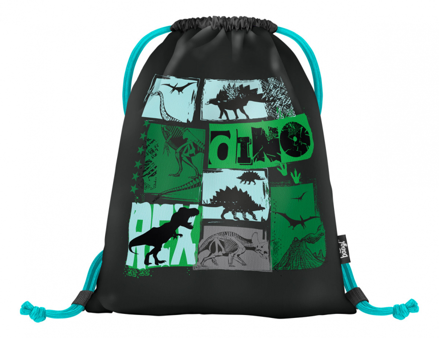 Chlapecký sáček na cvičky nebo přezůvky s motivem dinosaurů z pevného omyvatelného materiálu.