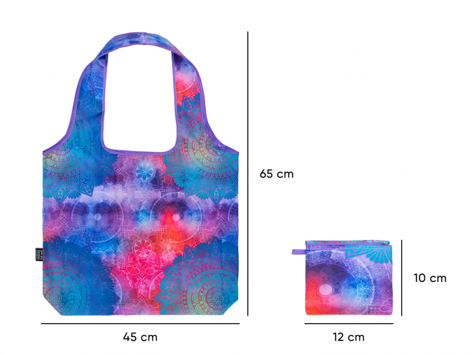 Díky skládací nákupní tašce v nápaditém barevném designu mandal budete i s velkým nákupem vypadat úžasně. Tato praktická taška se může opakovaně používat a stane se vašim každodenním pomocníkem. Taška je složená do malé kapsičky, která po rozložení tašky poslouží jako prostor k ukládání různých drobností.