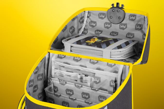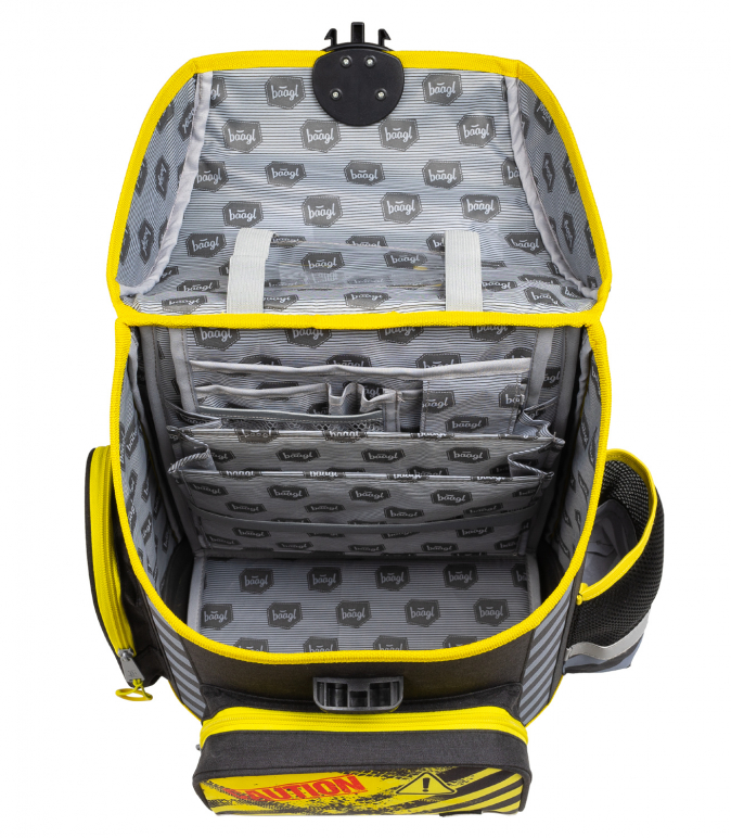 • Školní aktovka s vyztuženým tělem, vnitřním organizérem a třemi oddělenými kapsami a zapínáním na kvalitní přezku.