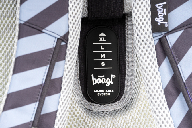 • Posuvný zádový systém BAAGL ADJUSTABLE SYSTEM umožňuje nastavení optimální polohy popruhů vzhledem k výšce dítěte.