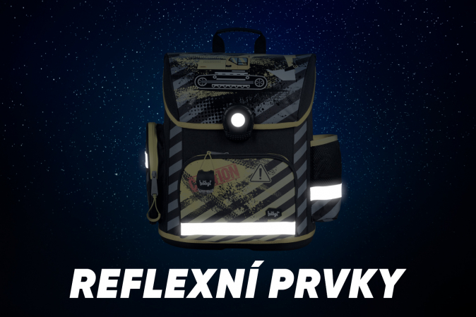 • Aktovka je vybavena elastickou svítilnou, která zajistí lepší viditelnost a bezpečnost školáka. Díky jednoduchému úchytu lze svítilnu pověsit kamkoli.