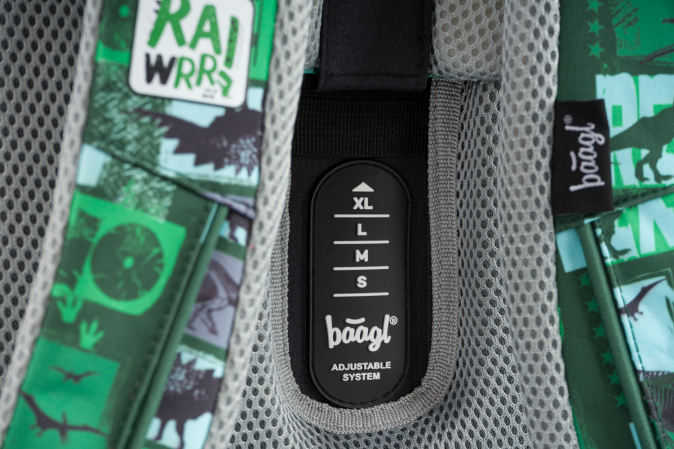 • Posuvný zádový systém BAAGL ADJUSTABLE SYSTEM umožňuje nastavení optimální polohy popruhů vzhledem k výšce dítěte.