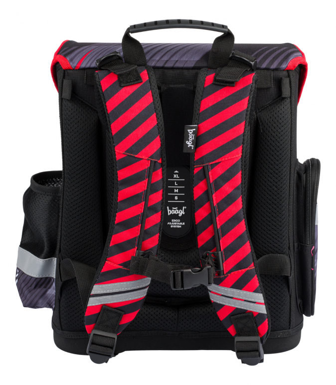 • Školní aktovka s vyztuženým tělem, vnitřním organizérem a třemi oddělenými kapsami a zapínáním na kvalitní přezku.