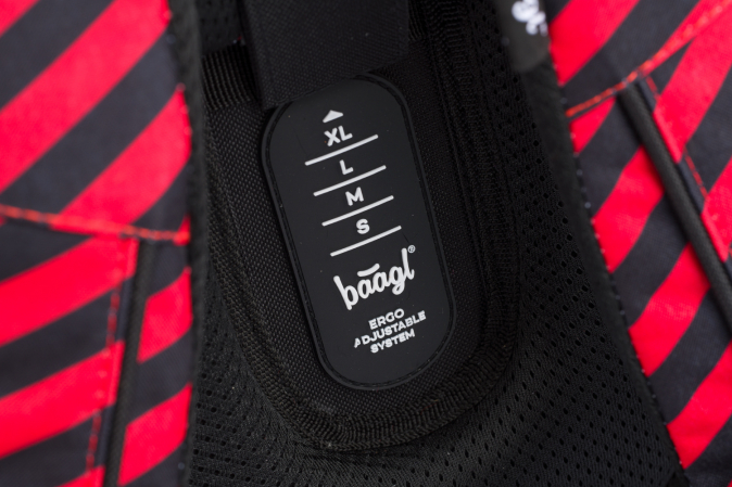 • Posuvný zádový systém ERGO ADJUSTABLE SYSTEM umožňuje nastavení optimální polohy popruhů vzhledem k výšce dítěte.