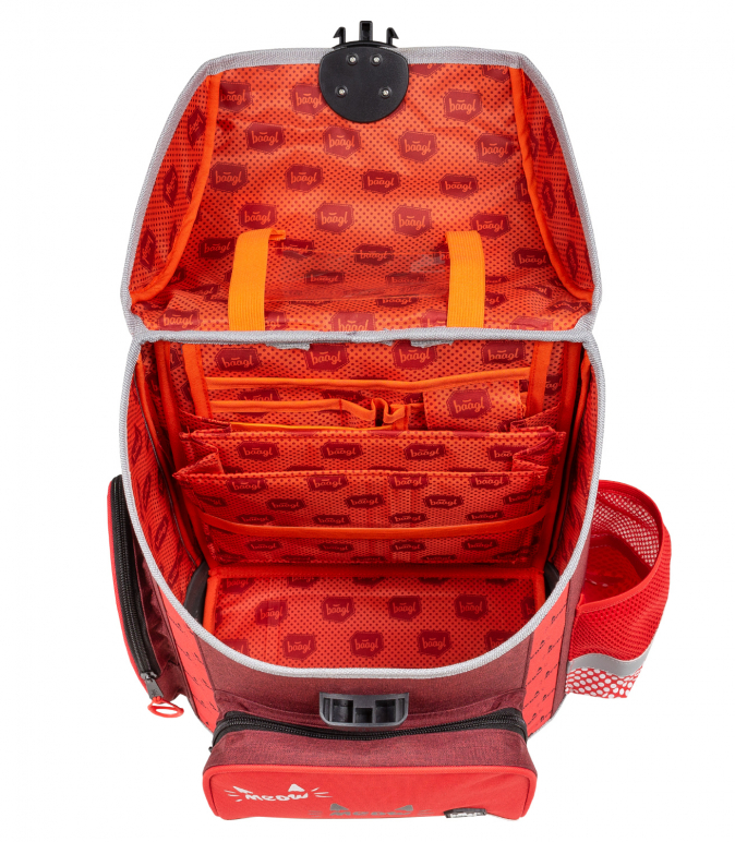 • Uvnitř aktovky je průhledná kapsa s rozvrhem a vnitřní organizér umožňující rovnoměrné rozložení hmotnosti.