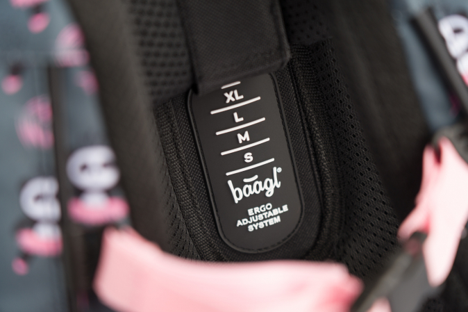 • Posuvný zádový systém ERGO ADJUSTABLE SYSTEM umožňuje nastavení optimální polohy popruhů vzhledem k výšce dítěte.