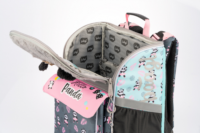 • Ergonomická školní aktovka s vyztuženým tělem, vnitřním organizérem a třemi oddělenými kapsami.