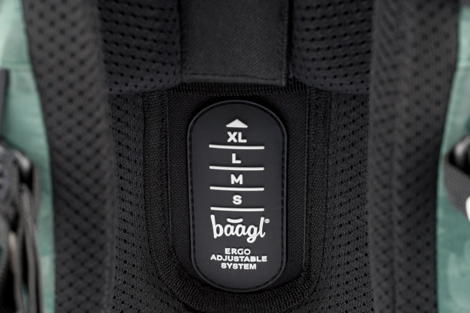 • Posuvný zádový systém ERGO ADJUSTABLE SYSTEM umožňuje nastavení optimální polohy popruhů vzhledem k výšce dítěte.