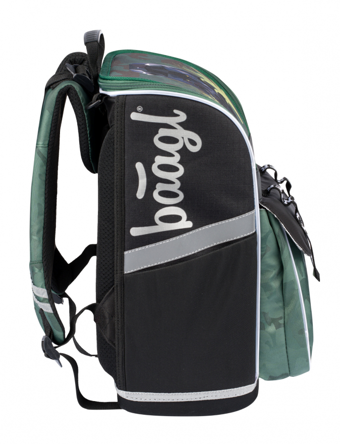 • Uvnitř aktovky je průhledná kapsa s rozvrhem a vnitřní organizér umožňující rovnoměrné rozložení hmotnosti, doplněný gumičkou pro fixaci.