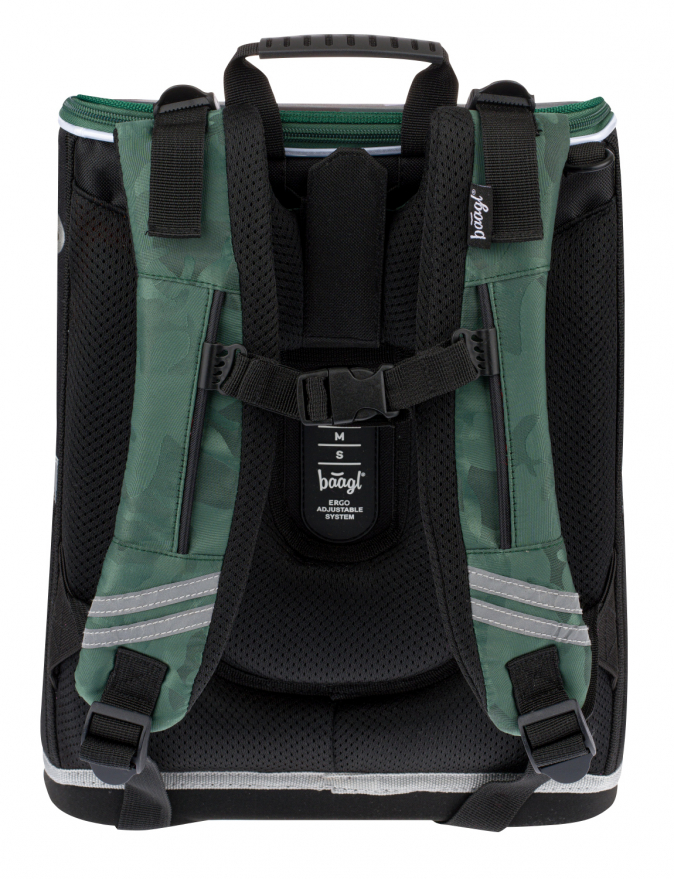 • Ergonomická školní aktovka s vyztuženým tělem, vnitřním organizérem a třemi oddělenými kapsami.