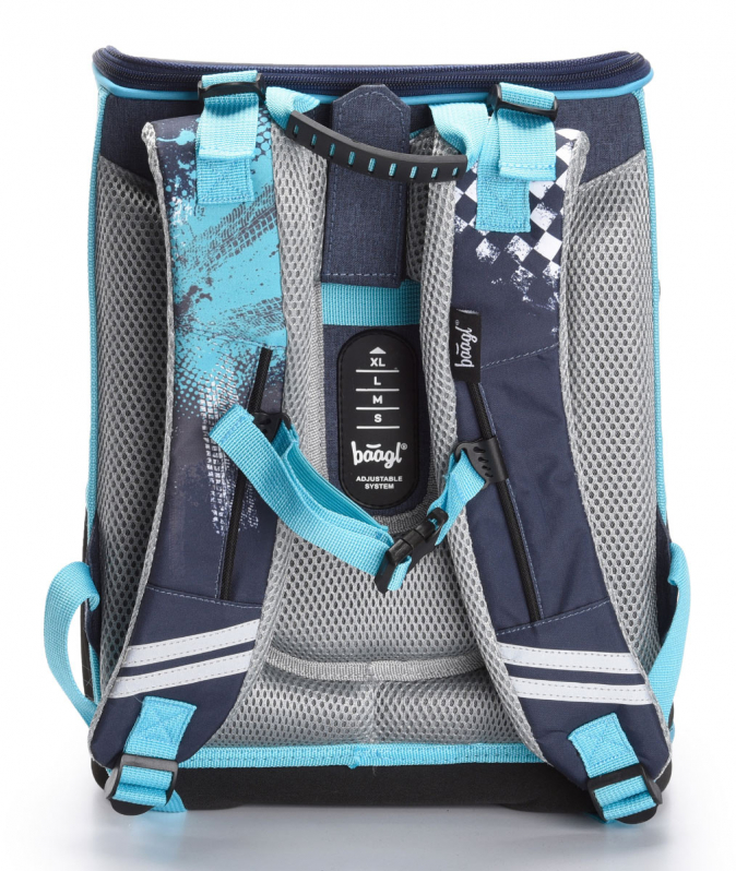 • Posuvný zádový systém BAAGL ADJUSTABLE SYSTEM umožňuje nastavení optimální polohy popruhů vzhledem k výšce dítěte.