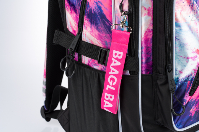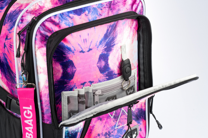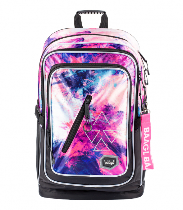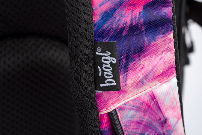 Tříkomorový dívčí batoh Cubic Abstract ve fialovo-růžovém barevném provedení se saténovými detaily. Batoh je vhodný již od 3. třídy ZŠ.