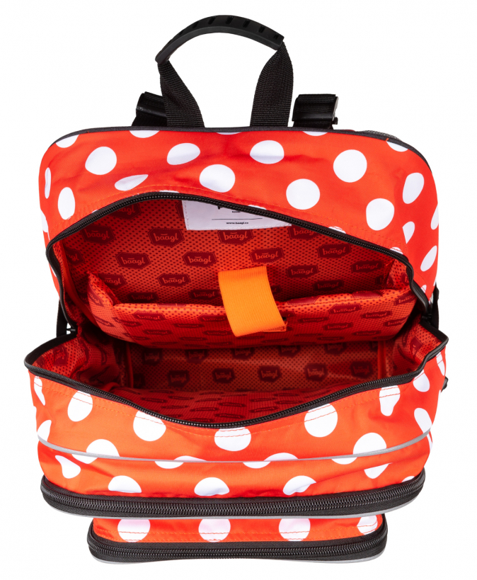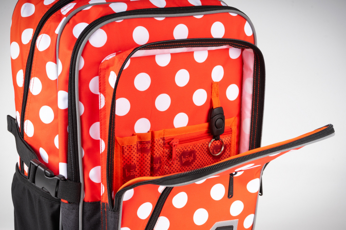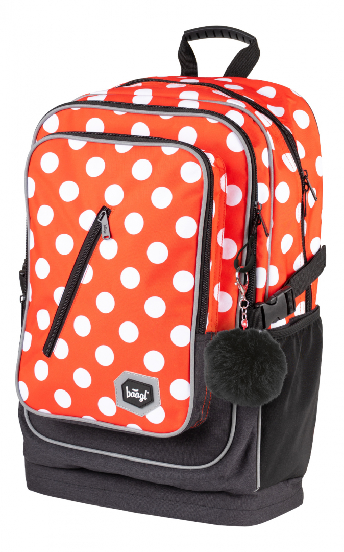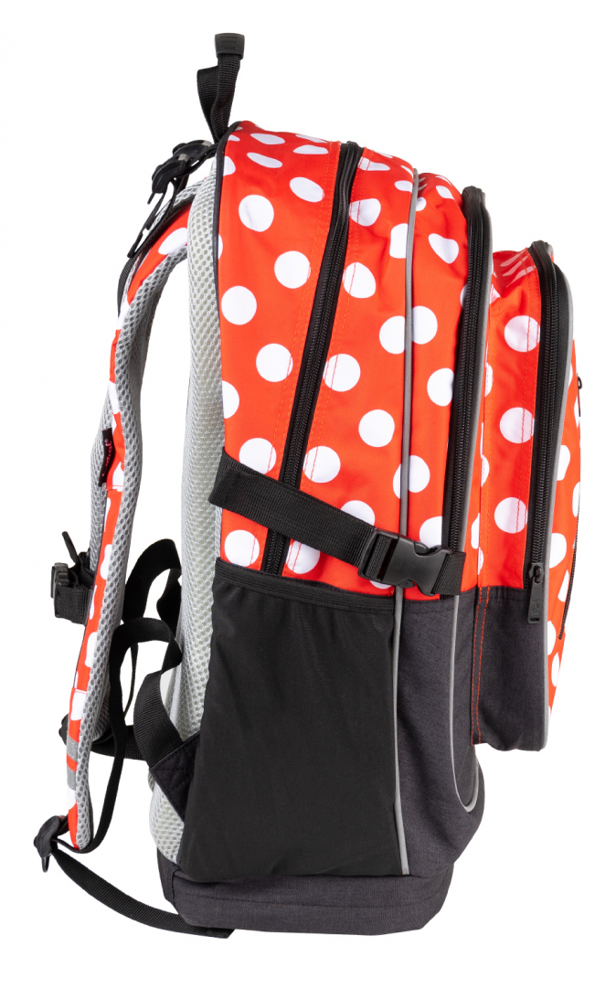 Tříkomorový školní batoh Cubic Puntíky, vhodný od 3. třídy 1. stupně ZŠ a také pro 2. stupeň ZŠ. Batoh byl úspěšně testován v ITC Zlín.