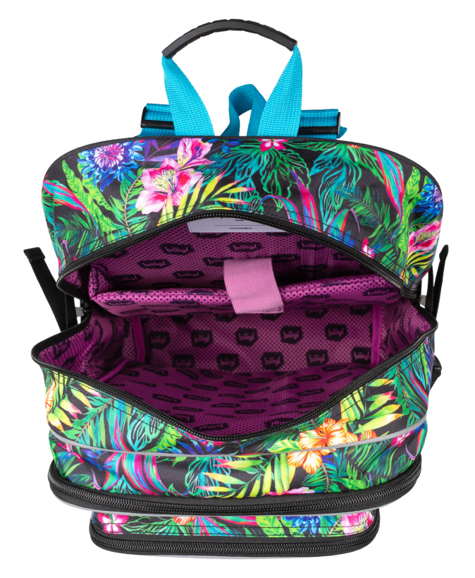 Tříkomorový školní batoh Cubic Tropical, vhodný od 3. třídy 1. stupně ZŠ a také pro 2. stupeň ZŠ. Batoh byl úspěšně testován v ITC Zlín.