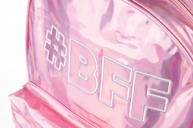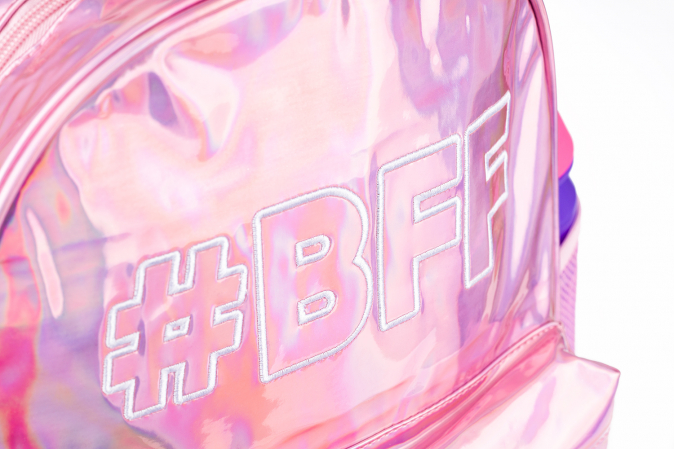 Nepřehlédnutelný batoh FUN #BFF, který díky holografické fólii dokáže měnit svou barvu.