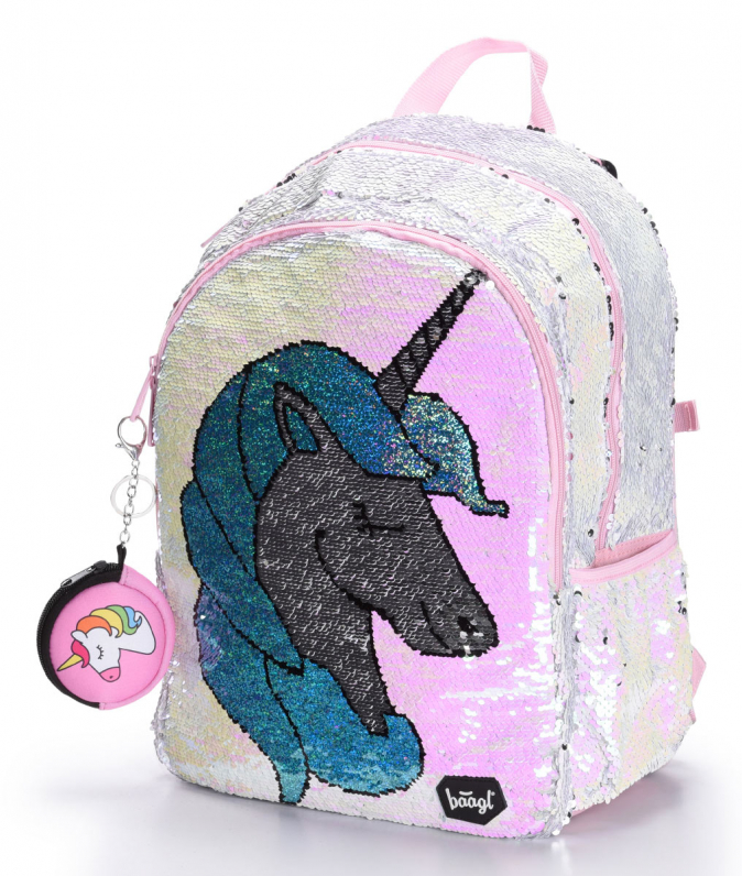 Školní batoh Fun Unicorn, díky reverzním flitrům můžete jeho vzhled proměňovat dle nálady, vhodný od 3. třídy 1. stupně ZŠ a také pro 2. stupeň ZŠ. Batoh byl úspěšně testován v ITC Zlín.