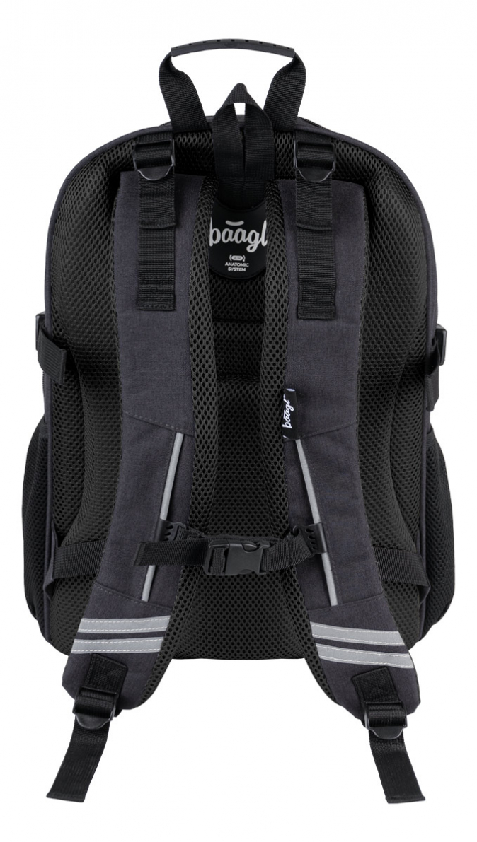 Školní batoh Logo Black v tmavě barvě, vhodný od 3. třídy 1. stupně ZŠ a také pro 2. stupeň ZŠ. Batoh byl úspěšně testován v ITC Zlín.