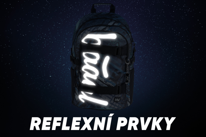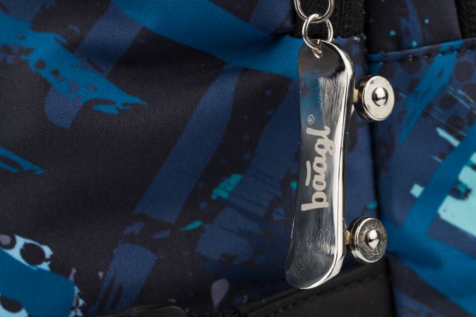 Chlapecký školní batoh s modrým abstraktním potiskem a reflexním logem BAAGL, vhodný od 3. třídy 1. stupně ZŠ a také pro 2. stupeň ZŠ.