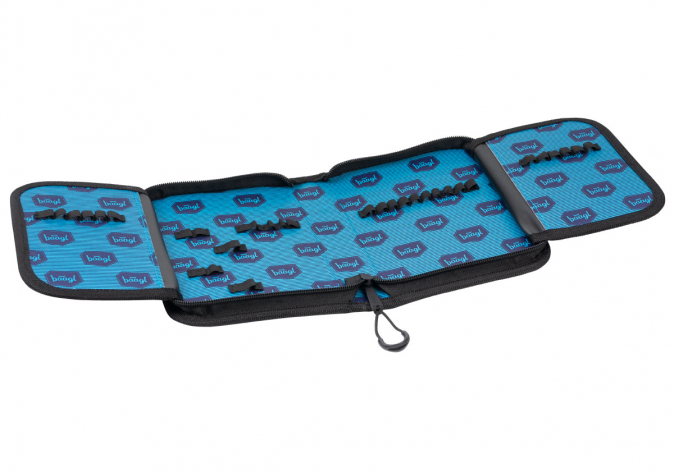 Modrý dvouchlopňový penál s vesmírným potiskem. Penál má dostatek prostoru pro všechny psací potřeby žáků prvního stupně ZŠ.