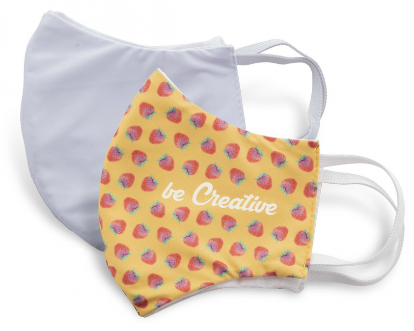 Zakázková, pratelná a opakovaně použitelná dvouvrstvá obličejová maska s gumičkami za uši a sublimačně tištěnou grafikou. Ve velikosti pro dospělé. Vyrobeno ze 100% polyesteru (140gr / m2) a 100% bavlny (140 gr / m2) textilie OEKO-TEX. Cena zahrnuje sublimační tisk, nezahrnuje tiskovou přípravu. Min. mn.: 100 ks.