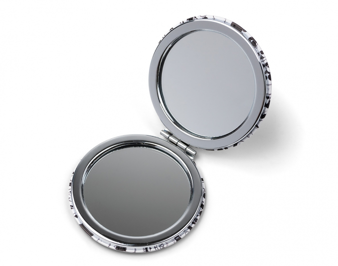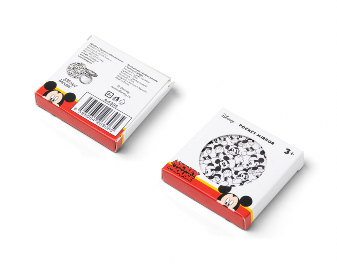 Kulaté kapesní zrcátko do kabelky s motivem mysáka Mickeyho.
