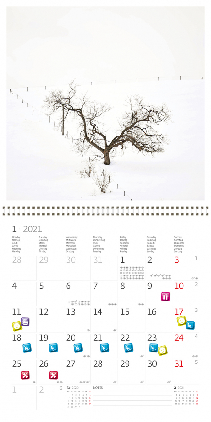 Kalendárium v šesti jazycích (GB, D, F, I, NL, DK)