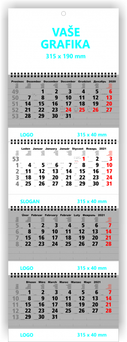 Nástěnný čtyřměsíční skládaný kalendář 2021 - šedý