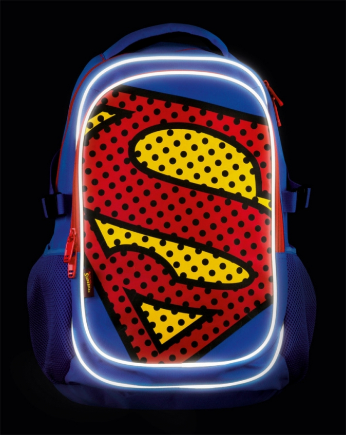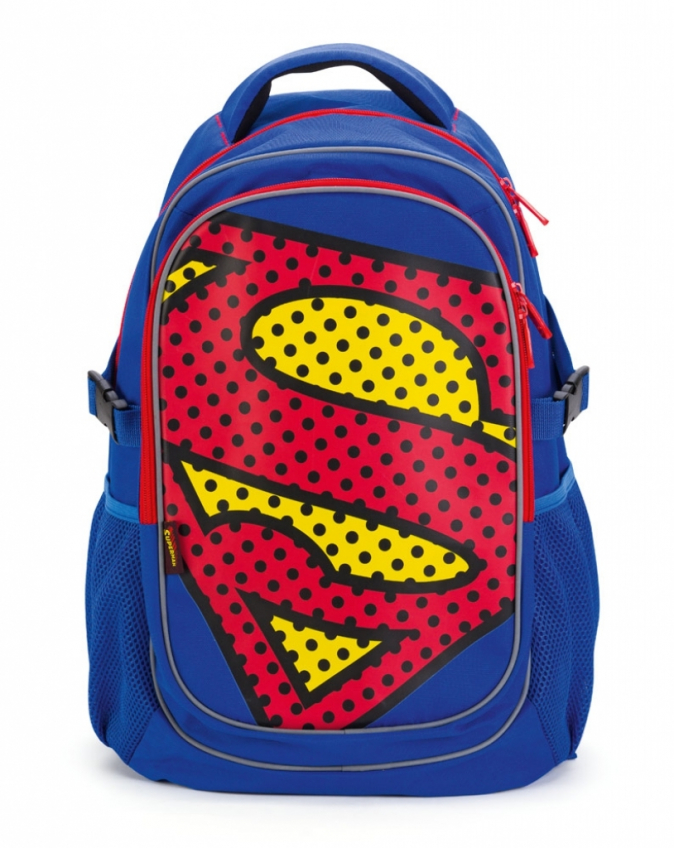 Školní batoh s výrazným logem SUPERMAN na přední části, vhodný od 3. třídy 1. stupně ZŠ a také pro 2. stupeň ZŠ.